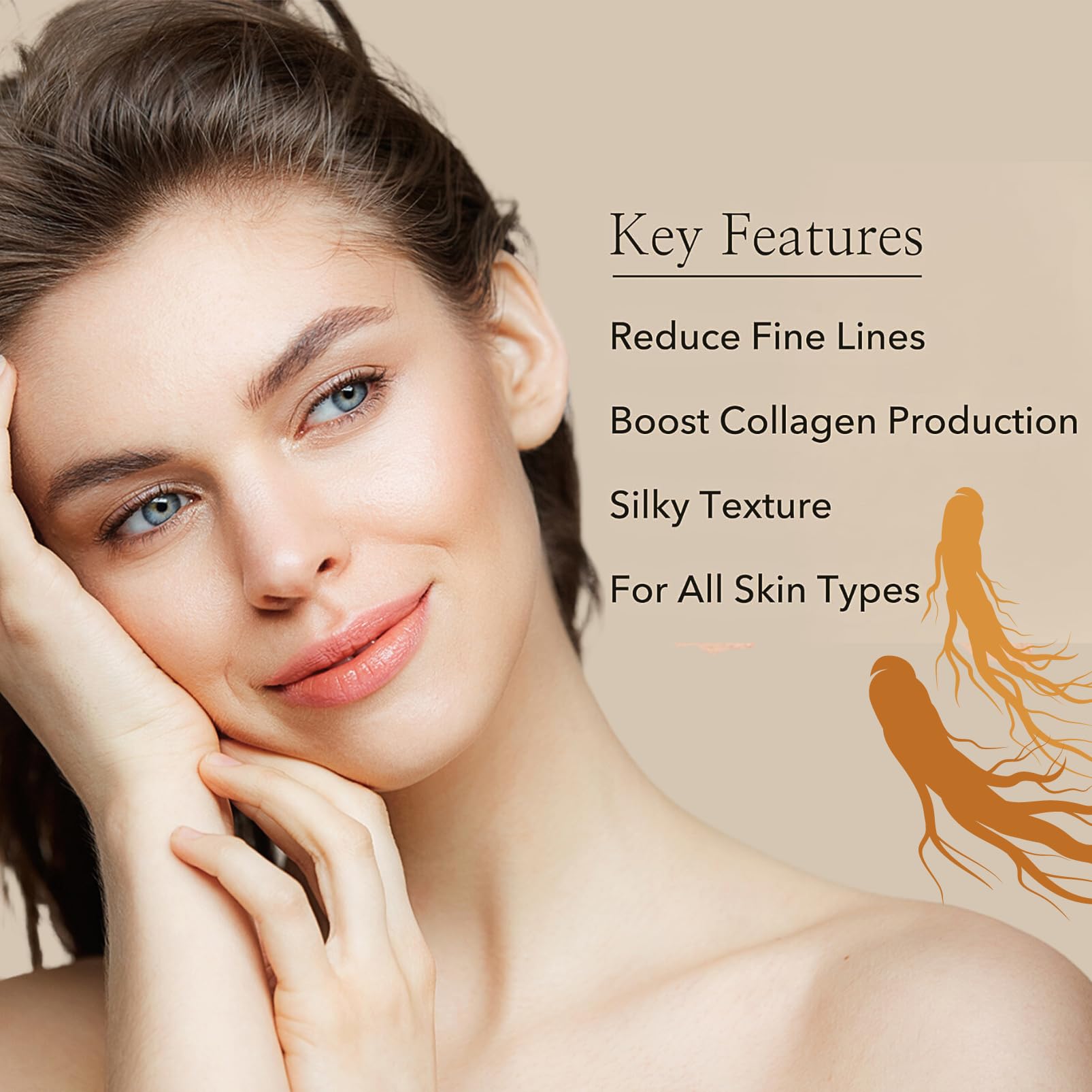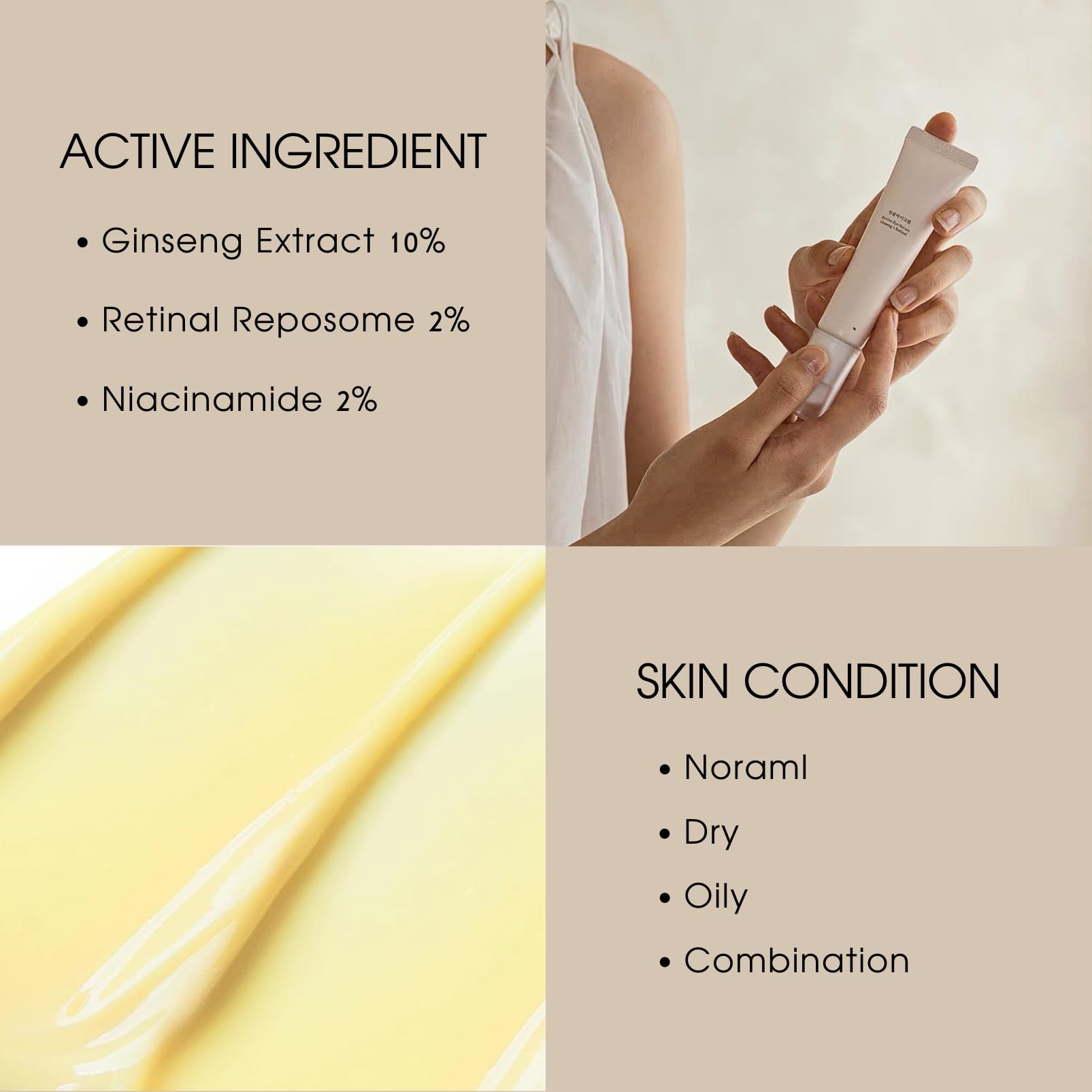 🌿 يعمل ثنائي الجينسنغ + الريتينال القوي على تحفيز إنتاج الكولاجين ويقلل الخطوط الدقيقة حول منطقة العين الحساسة