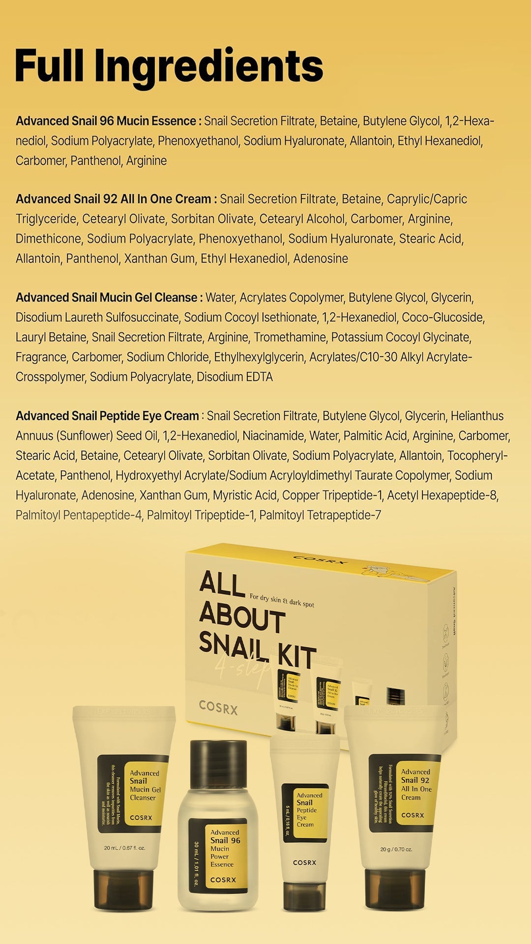 COSRX All About Snail Kit - Complete 4-Step Skincare Set for Dry Skin & Dark Spots