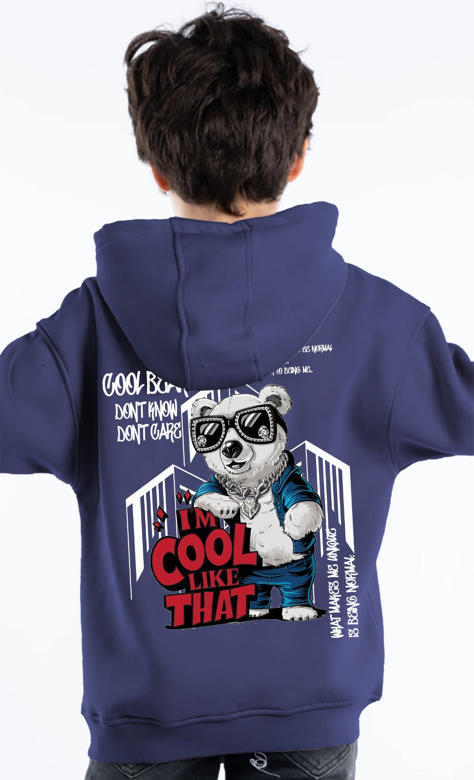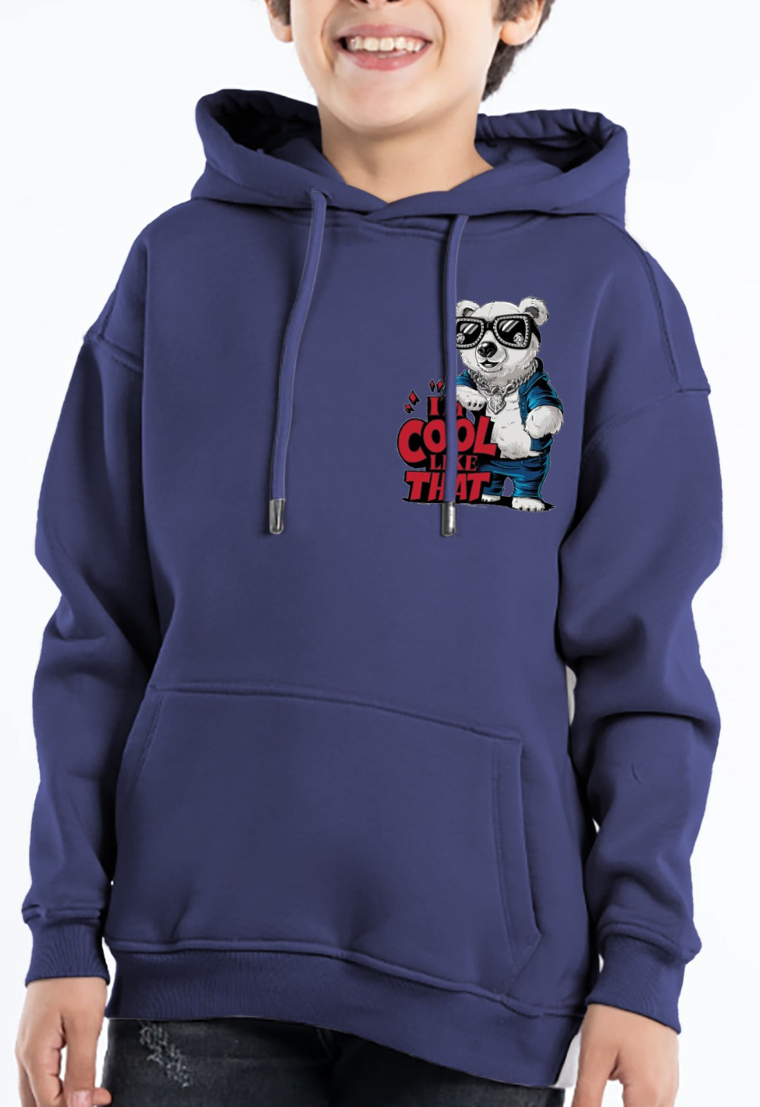 Super cool hoodie featuring a stylish panda character with sunglasses and 'I'm Cool That' text that kids will absolutely love! Made from premium Egyptian cotton for ultimate comfort and durability.