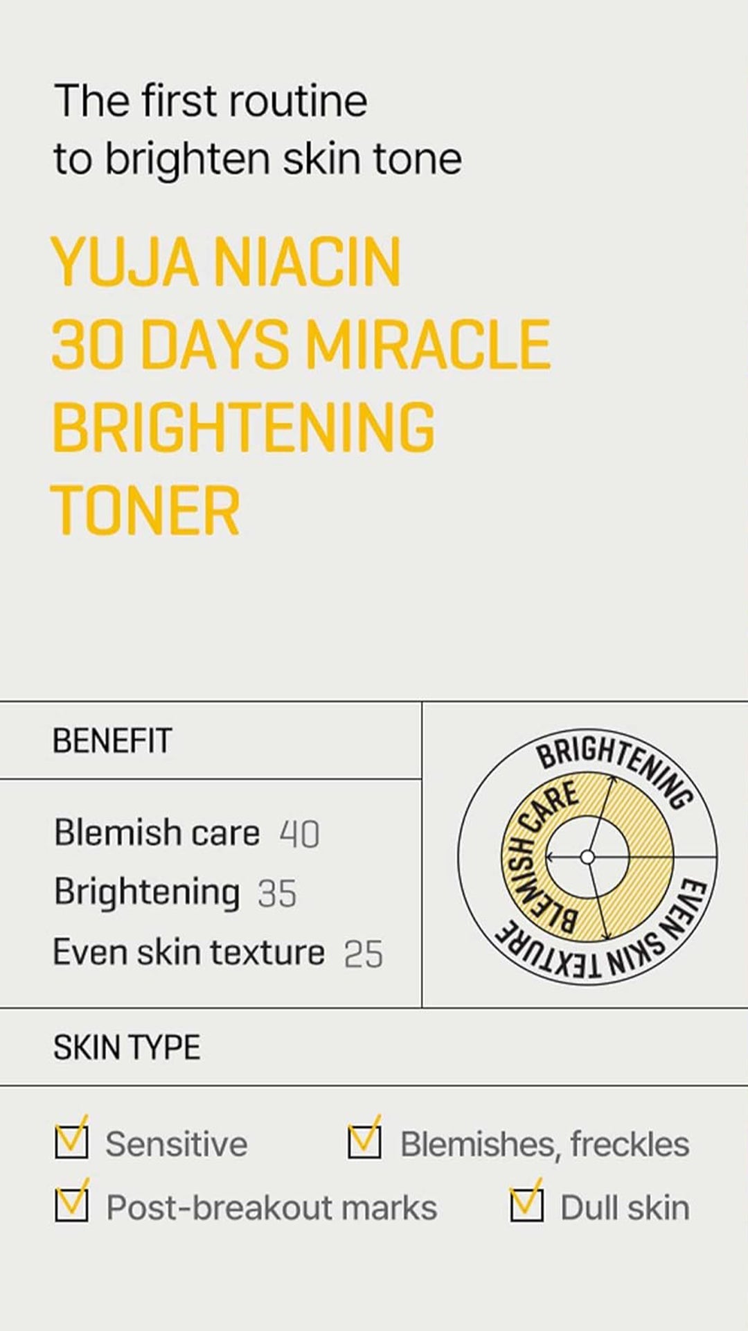 Transform your skin in 30 days with this powerful brightening toner featuring yuja extract and niacinamide. π
